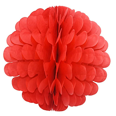 Бумажные украшения «Шар» поставляются в сложенном виде, что при транспортировке очень удобно, так как существенно экономит время и позволяет избежать повреждений. Если развернуть сложенное изделие, получится сфера с небольшими сотами.