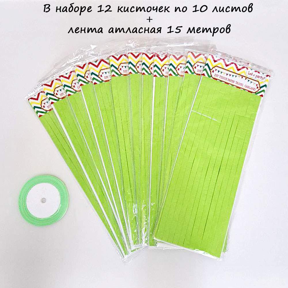Гирлянда тассел 12 кисточек по 10 листов, салатовый