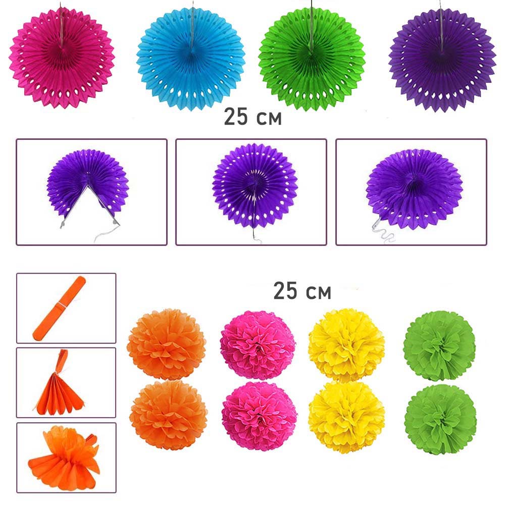 Помпоны из бумаги тишью 8 шт: