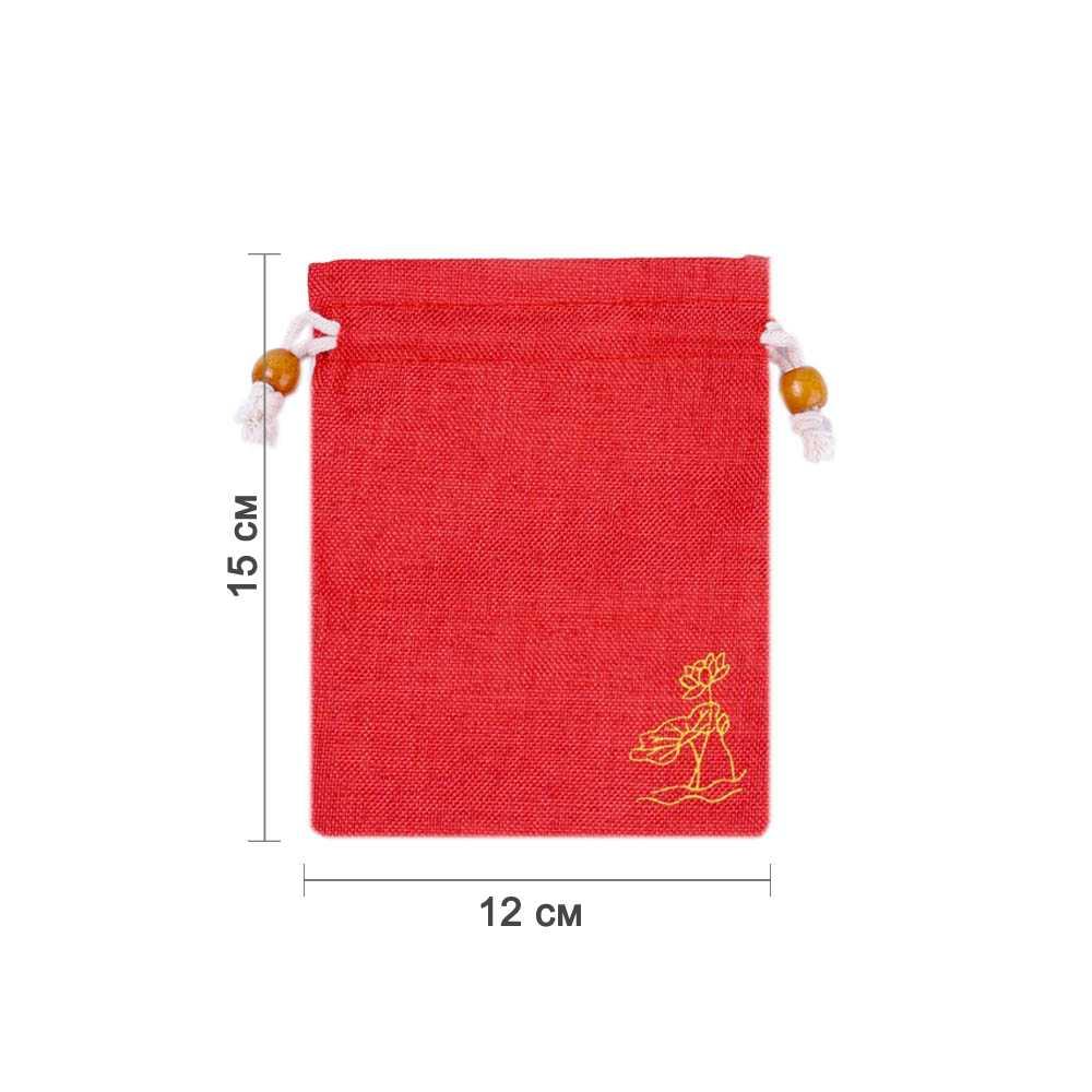 Мешочек из искусственного льна с орнаментом 15х12 см, красный