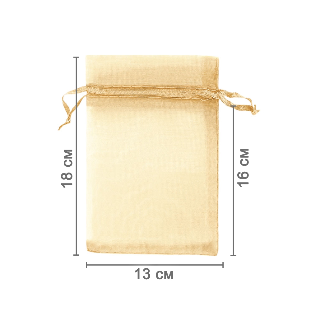 Мешочек из органзы 13 х 18 см  — стильное решение для упаковки мелких и средних предметов. Лёгкая полупрозрачная ткань красиво подчёркивает содержимое.