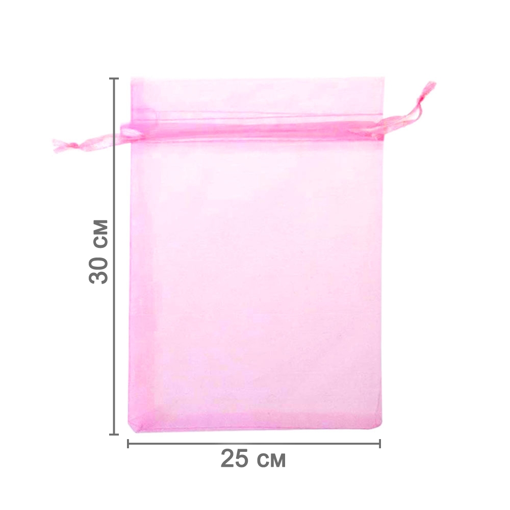 Мешочек из органзы 25 х 30 см — стильный аксессуар для упаковки средних и крупных предметов. Полупрозрачная ткань подчёркивает содержимое и придаёт аккуратный вид.