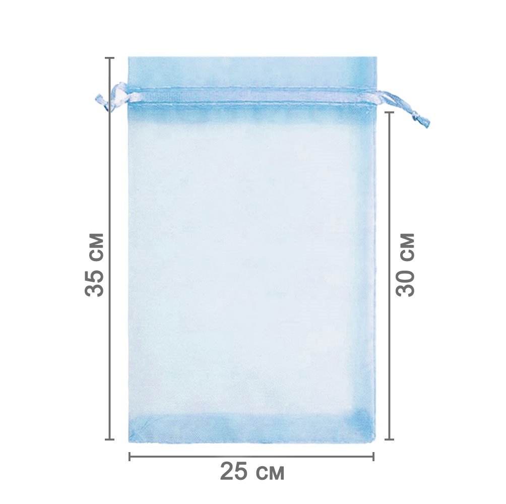 Мешочек из органзы 25 х 35 см — практичный аксессуар для упаковки крупных предметов и подарков. Лёгкая ткань подчёркивает содержимое и придаёт праздничный вид.