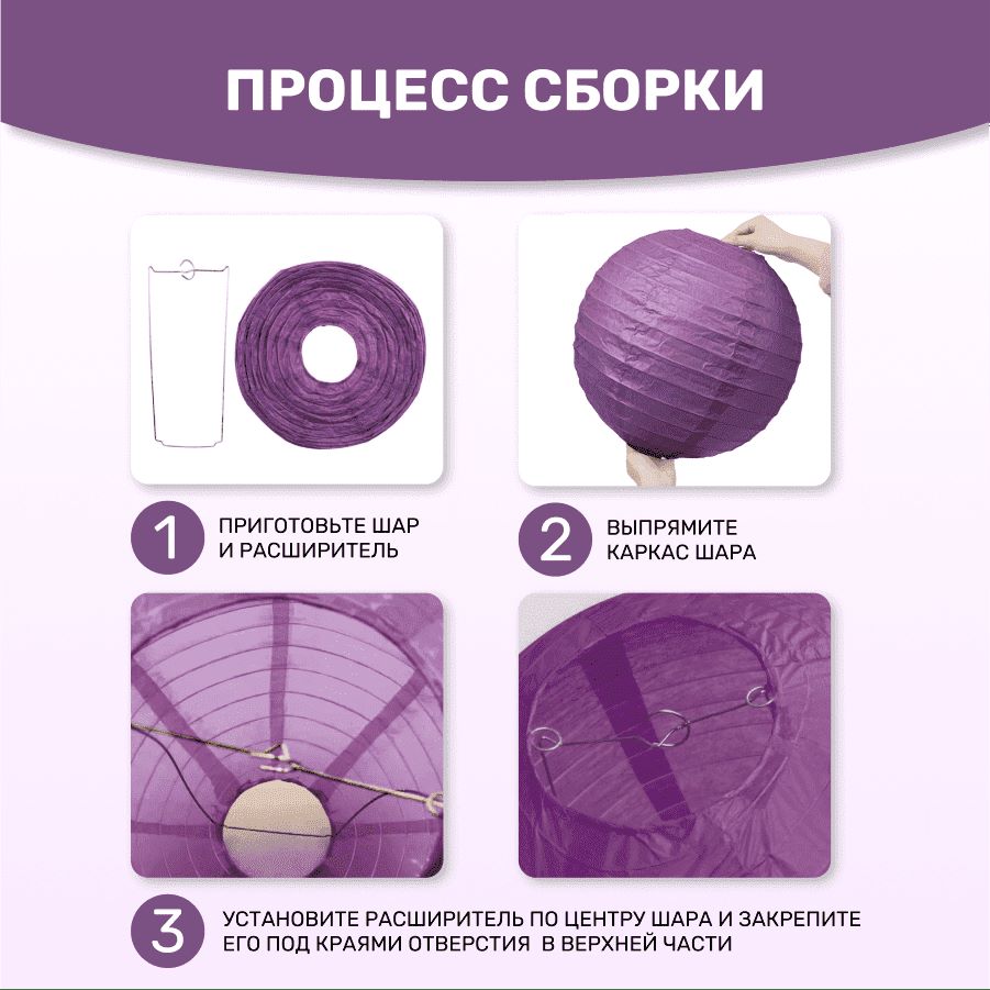 В комплект входит 8 бумажных фонариков и лента атласная.