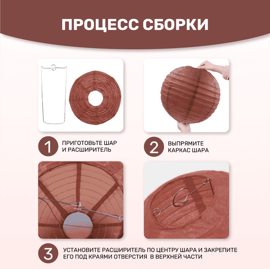 В комплект входит 8 бумажных фонариков и лента атласная.