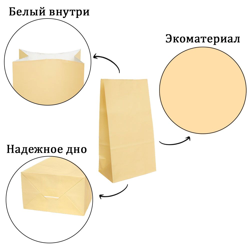 Подарочный пакет из крафтовой бумаги пастельного оттенка с белыми бумажными ручками и белой внутренней стороной.