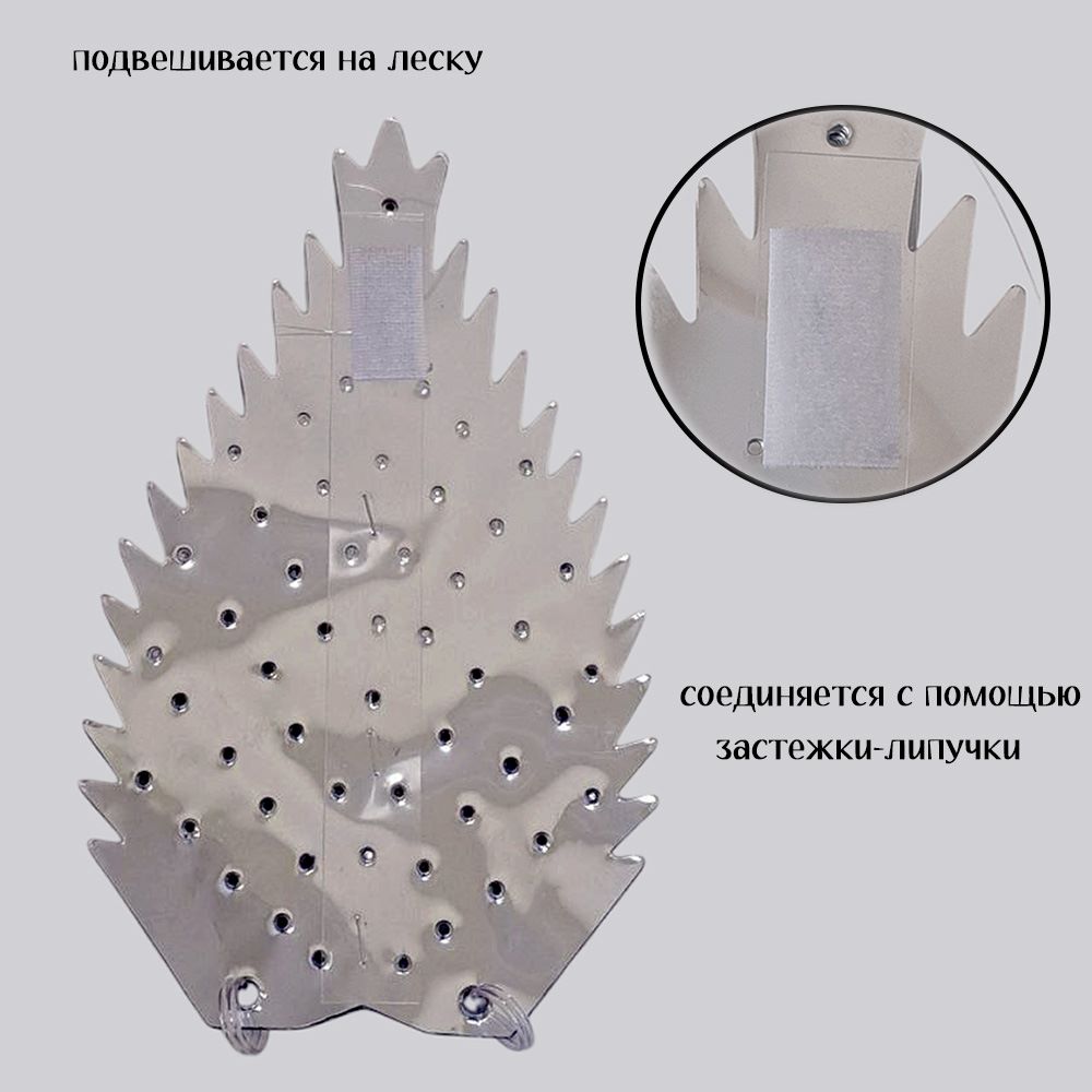 Поставляется в сложенном виде - просто расправьте и зафиксируйте форму с помощью самоклеющейся застёжки-липучки (можно использовать неоднократно). Подвешивается на встроенную петельку из лески.